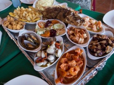 Of course after seeing all this fish we had to indulge in a little ourselves. We actually did purchase some from the market that the Sea Salt restaurant would prepare for us for supper. But for lunch, Osman took us to an open air restaurant over looking the whole scene. We ordered a sampler plate which fed all six of us easily.