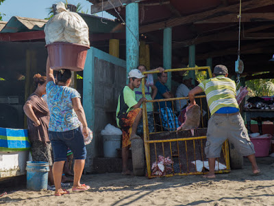 The daily catch get weighed, sold to the local merchants who prep and sell to the public.