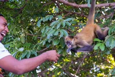 When we reached the main island, Osman grabbed some treats we purchased from the tour operator and started calling a monkey called Lucille. Slowly but surely, with parents hovering the in the background, out she came.